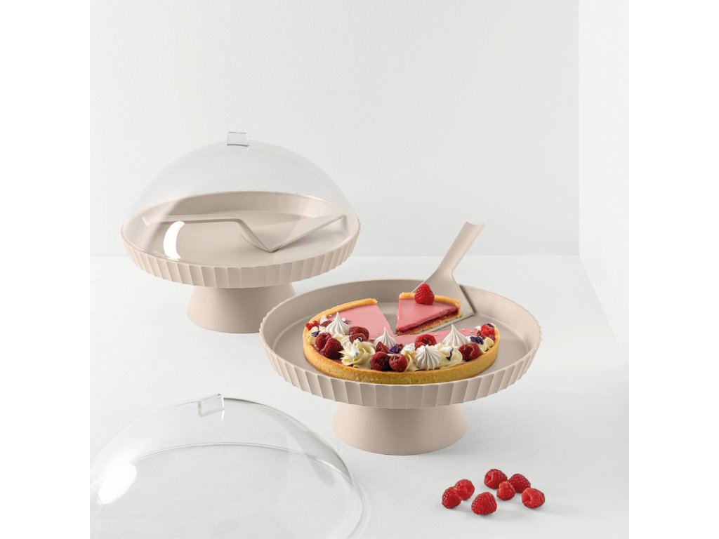 Stojan na dorty s krytem a lopatkou představuje perfektní způsob, jak prezentovat dorty, zákusky a jiné dezerty. Ideální také pro servírování sýrů, ovoce, zeleniny a chuťovek. Průhledný obal chrání dorty před vysycháním, prachem, vlhkostí a případným hmyzem – perfektně přiléhá ke stojanu. Díky dokonale hladkému povrchu a průhlednosti krásně zvýrazní a zobrazí kvality prezentovaného pokrmu. Ideální pro vnitřní i venkovní použití.