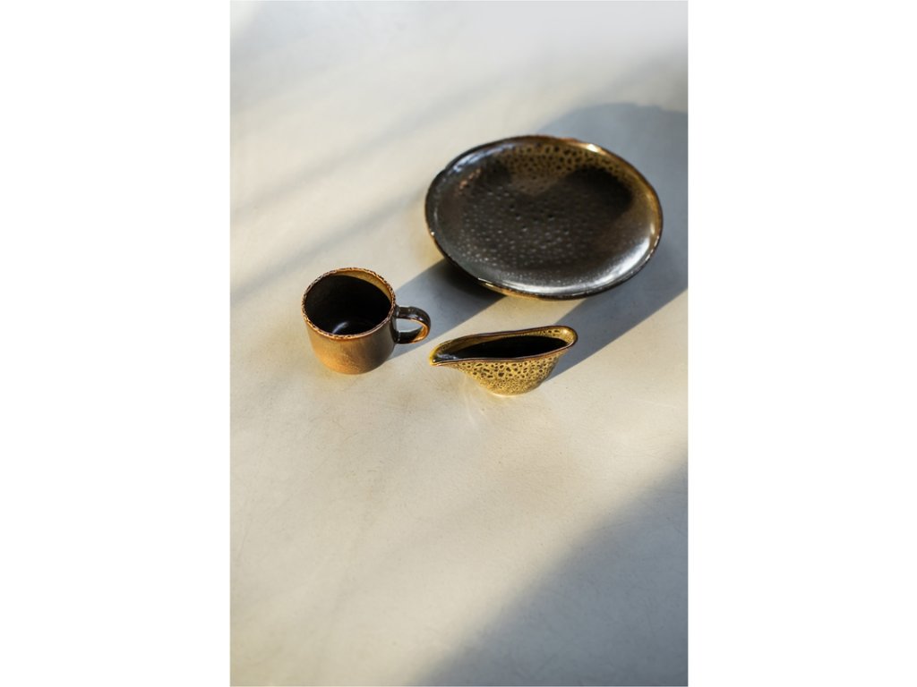 Naservírujte své pokrmy s působivou elegancí tmavého šarmu, který ve svém odlesku skrývá tajemný zelený odstín. Nepravidelně zakončená hrana představuje dodatečný prvek, který zdůrazňuje individualitu každého pokrmu. 100% porcelán vytváří jedinečný design získaný během procesu vypalování při 1 380 °C. To také zaručuje a odolnost proti odštípnutí.