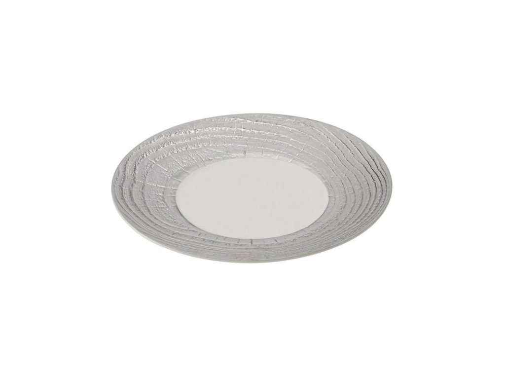 Arborescence talíř zdokonalí vaše kulinářské umění svým jedinečným designem napodobujícím kůru stromu, kterou zdobí platina. Kromě estetické stránky vás nadchne i svou kvalitou, která odpovídá náročným požadavkům profesionálních šéfkuchařů. Je tak ideální volbou pro servírování jakýchkoliv gurmánských jídel. Kombinace slonové kosti s platinou vám umožní hrát si s texturami a kontrasty. Jeho velká plocha pomůže vnést do vašich jídel ještě více elegance. Protože talíř zdobí platinové prvky, neměl by být používaný v troubě nebo mikrovlnce a doporučuje se pouze ruční mytí.Talíř klubový pr. 31 cm, platinový