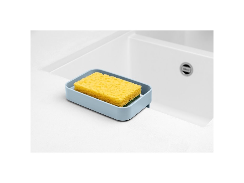 Držák BATTIGIA představuje praktický organizér pro příslušenství na mytí nádobí. Umísťuje se na stěnu dřezu pomocí dvou účinných přísavek namontovaným pod ním. Při instalaci do dřezu bude houba/utěrka kapat přímo do dřezu, aniž by potřísnila okolní povrch. Část určená pro houbu je mírně nakloněná, což zabraňuje zadržování vody. Okraj slouží k zavěšení kuchyňských utěrek. Tento užitečný doplněk usnadňuje organizaci práce a udržování hygieny a pořádku v kuchyni.