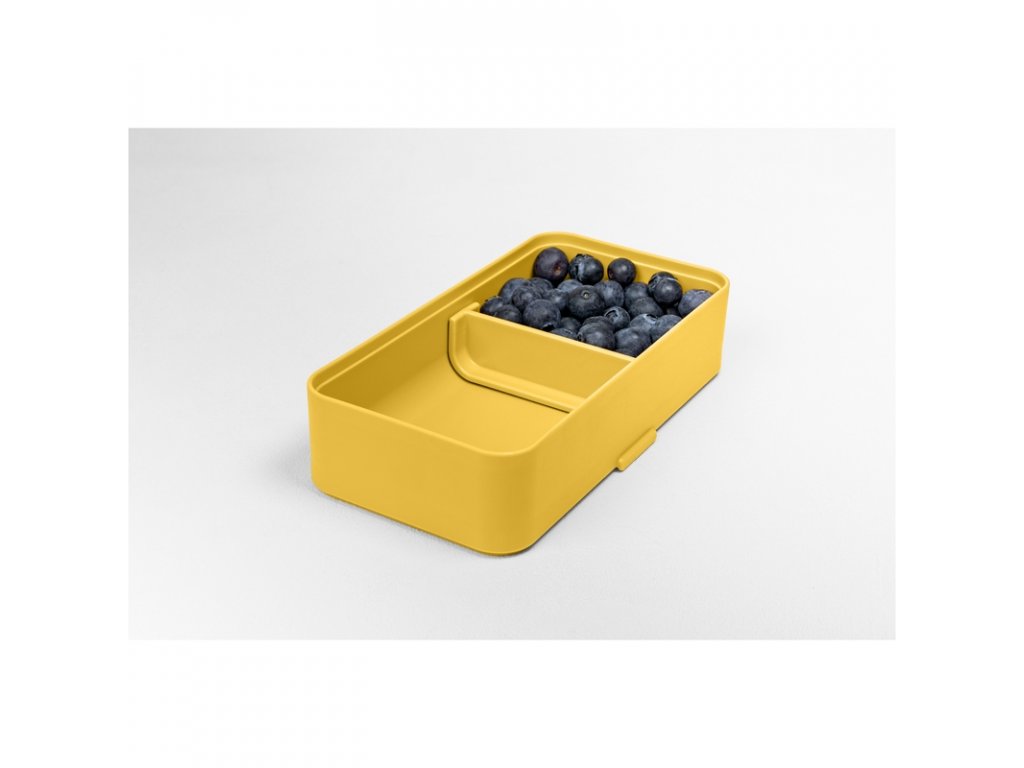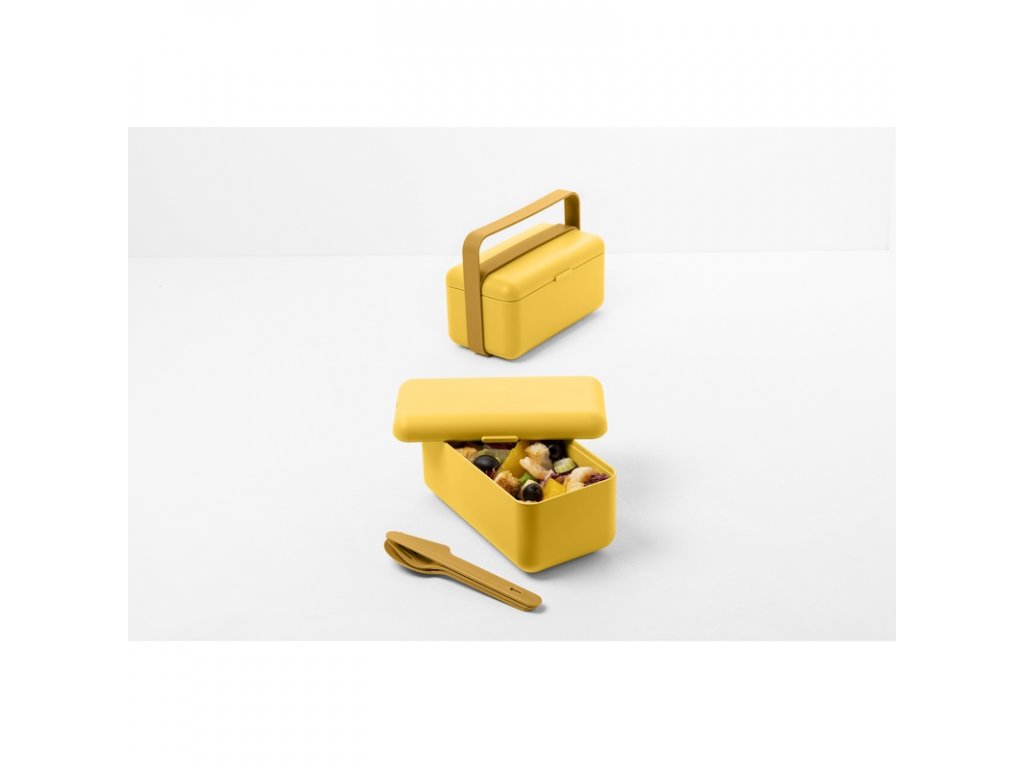 Vnitřní pohyblivý rozdělovač rozděluje potraviny tak, aby si zachovaly nejlepší chuť a konzistenci. Speciální větrací otvor umožňuje rovnoměrný ohřev a bezpečné použití v mikrovlnné troubě. Vzduchotěsný kryt s otvorem pro sluchátka nebo nabíjecí kabel se zároveň stane stabilním stojánkem na telefon. Snadné zavírání a otevírání nezpůsobuje trhání nebo pohyb potravin uvnitř. Další ochranou proti otevření je atraktivní popruh, který zároveň slouží k pohodlnému přenášení jídla. Lunchbox obsahuje také příbory (lžíce, vidlička a nůž), které jsou kompaktně umístěny na horní straně nádoby, těsně pod hlavním krytem.