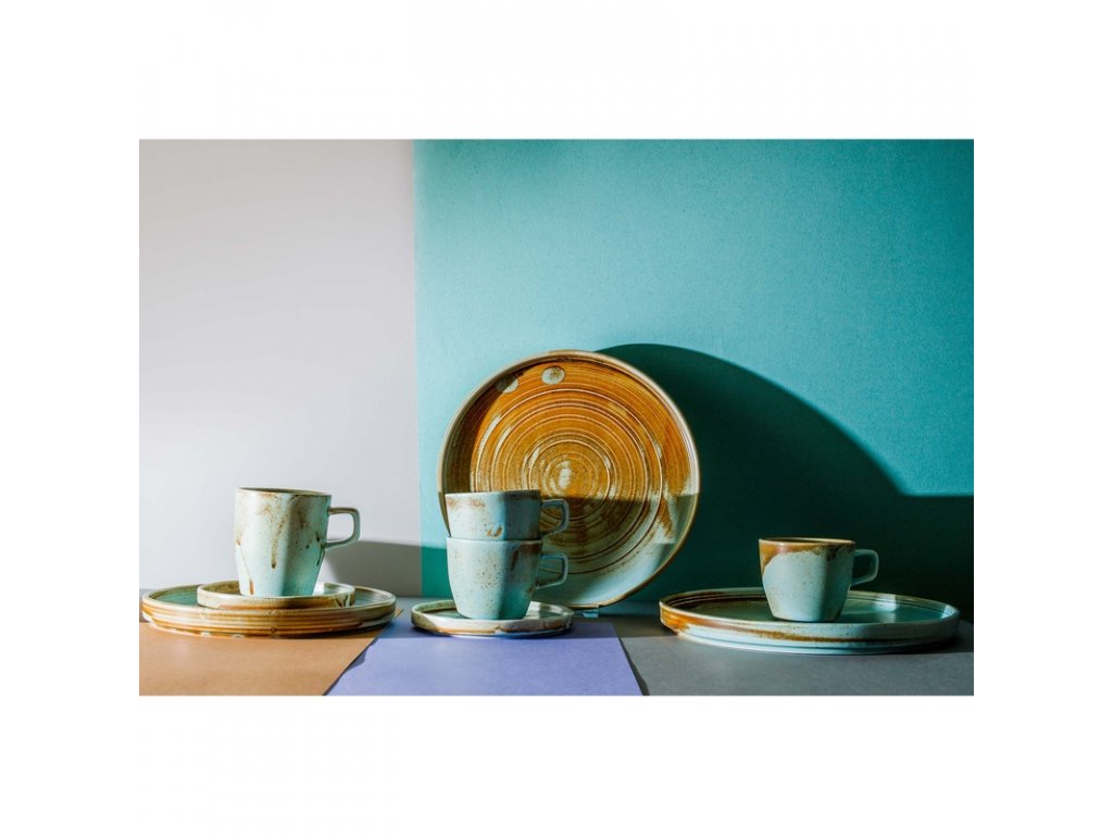 Vytvořte ze stolování nezapomenutelný zážitek. Tento šálek ukazuje kouzlo exotiky a přitahuje pozornost svým ručním zpracováním a módním designem tyrkysové a rezavé barvy, ve kterých vyniknou vaše kulinářská díla. Kvalitní porcelán se postará o dlouhodobou radost z používání a umožňuje mytí v myčce nádobí. Zkuste třeba i trochu šílenství a spojte kolekci Brassi s nádobím Verlo Fire. Toto duo bude jistě vyčnívat ze zbytku nádobí.