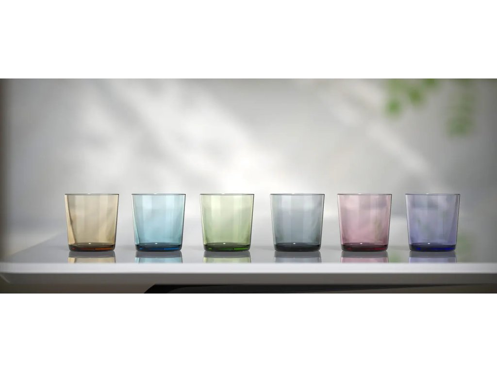 Kolekce sklenic Cidra spojuje minimalistický design s výraznými barvami, které dodají každému stolování svěží a působivý vzhled. K dispozici jsou v odstínech zelené, modré, šedé, růžové, žluté a fialové, což umožňuje snadné barevné rozlišení nápojů i jednotlivých sklenic při větších akcích či v provozu. Kvalitní sodnovápenaté sklo vyniká vysokou odolností vůči mechanickému i tepelnému poškození a zachovává si dlouhodobě čirý vzhled bez matnění. Skvěle se hodí pro restaurace, bary i catering, které touží po funkčním, odolném a zároveň hezky vypadajícím nádobí.