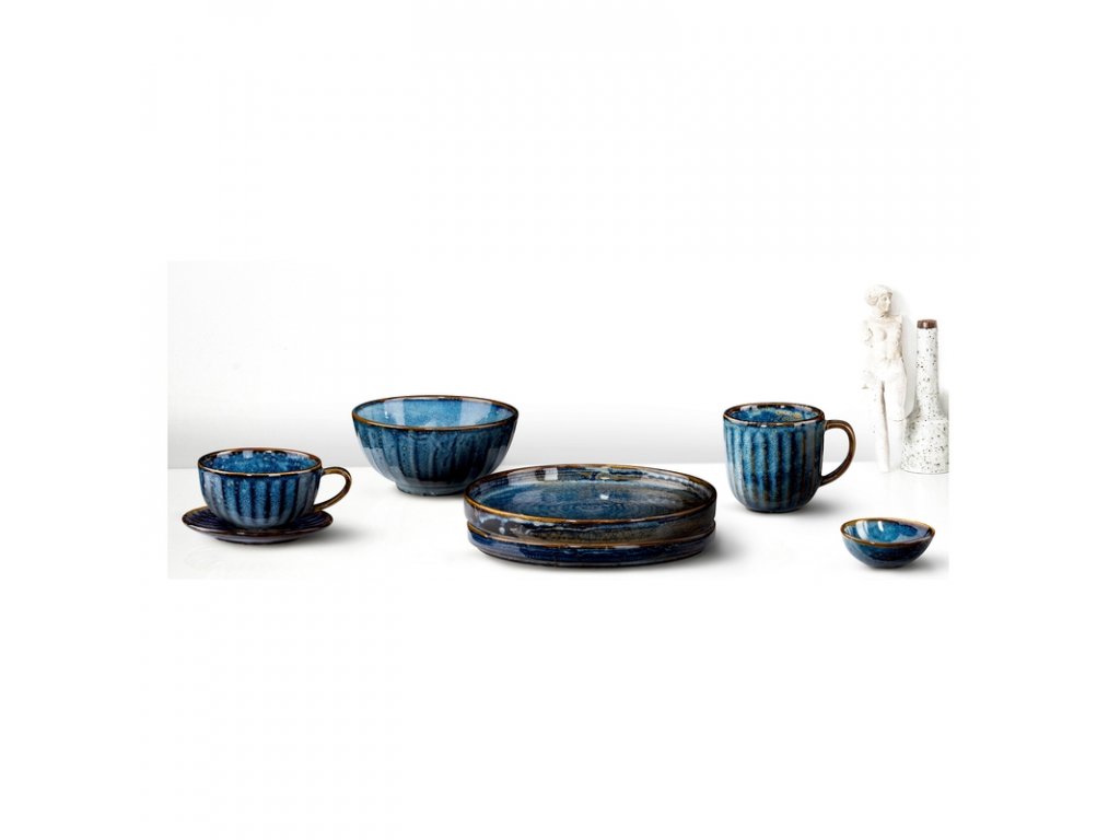 Ultramarínová modř zakončená měděným okrajem ze sebe vyzařuje krásu hlubinného oceánu, kterou spolu s vašimi kulinářskými kousky servíruje přímo na jídelní stoly. 100% porcelán pokrytý glazurou dodává jedinečný vzor získaný během procesu vypalování při 1 380 °C. To také zaručuje velmi vysokou odolnost proti odštípnutí.
