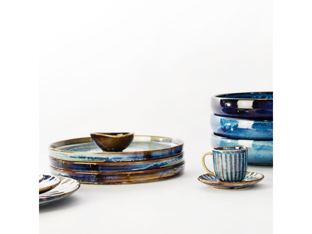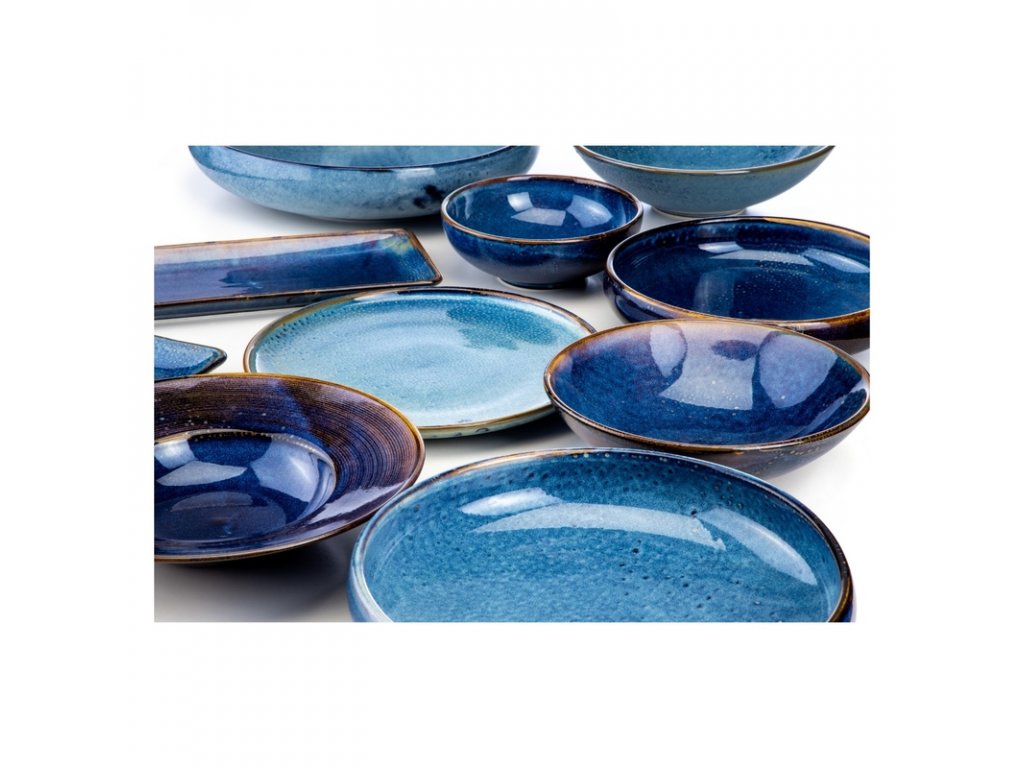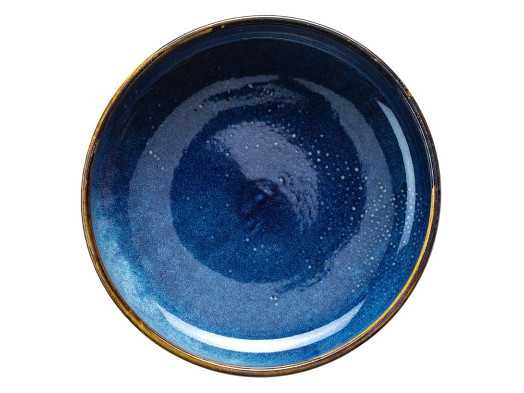 Ultramarínová modř s měděnými okraji, to představuje nízkou bufetovou mísu z kolekce Deep Blue. 100% porcelán pokrytý působivým smaltem zaručuje jedinečný vzor získaný vypalováním v 1 380 °C. To také zaručuje velmi vysokou odolnost proti odštípnutí. Nízké okraje se hodí pro servírování sušenek, brambůrků či různých jiných dobrot.
