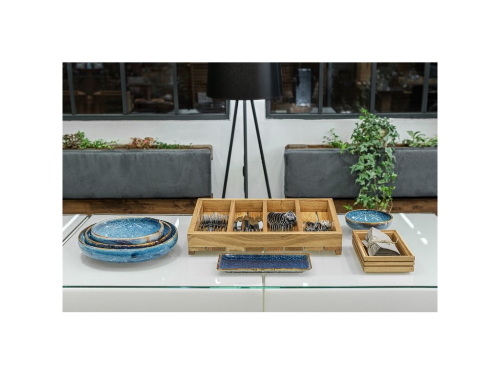 Ultramarínová modř s měděnými okraji, to představuje nízkou bufetovou mísu z kolekce Deep Blue. 100% porcelán pokrytý působivým smaltem zaručuje jedinečný vzor získaný vypalováním v 1 380 °C. To také zaručuje velmi vysokou odolnost proti odštípnutí. Nízké okraje se hodí pro servírování sušenek, brambůrků či různých jiných dobrot.