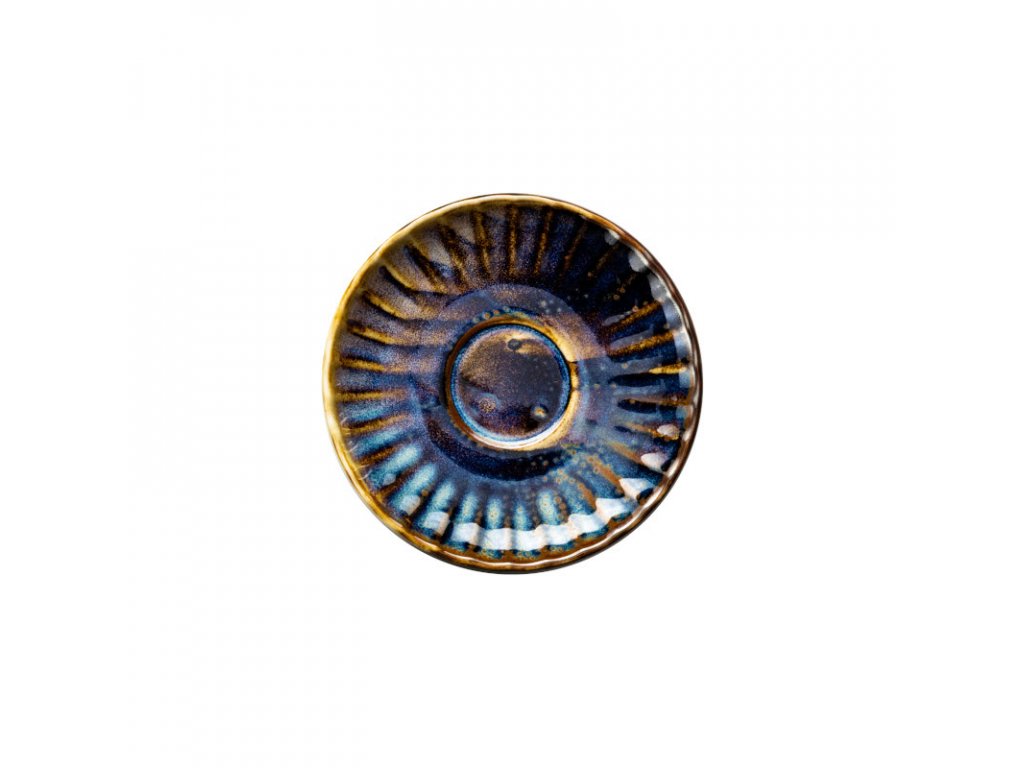 Ultramarínová modř zakončená měděným okrajem ze sebe vyzařuje krásu hlubinného oceánu, kterou spolu s vašimi kulinářskými kousky servíruje přímo na jídelní stoly. 100% porcelán pokrytý glazurou dodává jedinečný vzor získaný během procesu vypalování při 1 380 °C. To také zaručuje velmi vysokou odolnost proti odštípnutí. Tento podšálek skvěle doplní šálek na espresso V-82022-6 ze stejné kolekce.