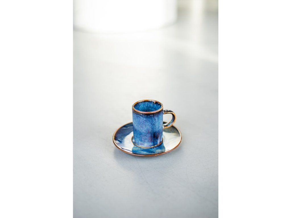 Ultramarínová modř zakončená měděným okrajem ze sebe vyzařuje krásu hlubinného oceánu, kterou spolu s vašimi kulinářskými kousky servíruje přímo na jídelní stoly. 100% porcelán pokrytý glazurou dodává jedinečný vzor získaný během procesu vypalování při 1 380 °C. To také zaručuje velmi vysokou odolnost proti odštípnutí.