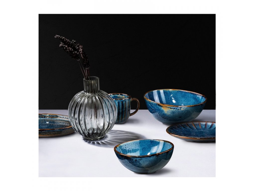 Ultramarínová modř zakončená měděným okrajem ze sebe vyzařuje krásu hlubinného oceánu, kterou spolu s vašimi kulinářskými kousky servíruje přímo na jídelní stoly. 100% porcelán pokrytý glazurou dodává jedinečný vzor získaný během procesu vypalování při 1 380 °C. To také zaručuje velmi vysokou odolnost proti odštípnutí.