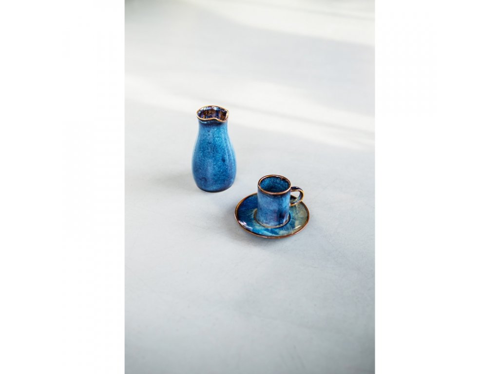 Ultramarínová modř zakončená měděným okrajem ze sebe vyzařuje krásu hlubinného oceánu, kterou spolu s vašimi kulinářskými kousky servíruje přímo na jídelní stoly. 100% porcelán pokrytý glazurou dodává jedinečný vzor získaný během procesu vypalování při 1 380 °C. To také zaručuje velmi vysokou odolnost proti odštípnutí.