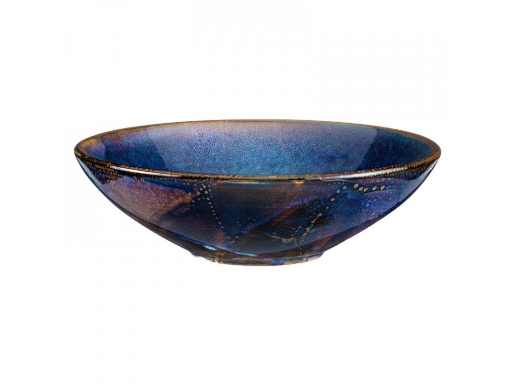 Ultramarín s měděnými okraji, to je hluboký talíř z kolekce Deep Blue od značky Verlo. 100% porcelán pokrytý působivým smaltem garantuje jedinečný vzor získaný vypalováním v 1 380 °C. To také zaručuje velmi vysokou odolnost proti odštípnutí. Tento mořskými vlnami ošlehaný parťák vykouzlí úžasně příjemnou atmosféru u každého pokrmu, který na něm budete podávat. Budete si připadat jak na romantické večeři na pláži při západu slunce.