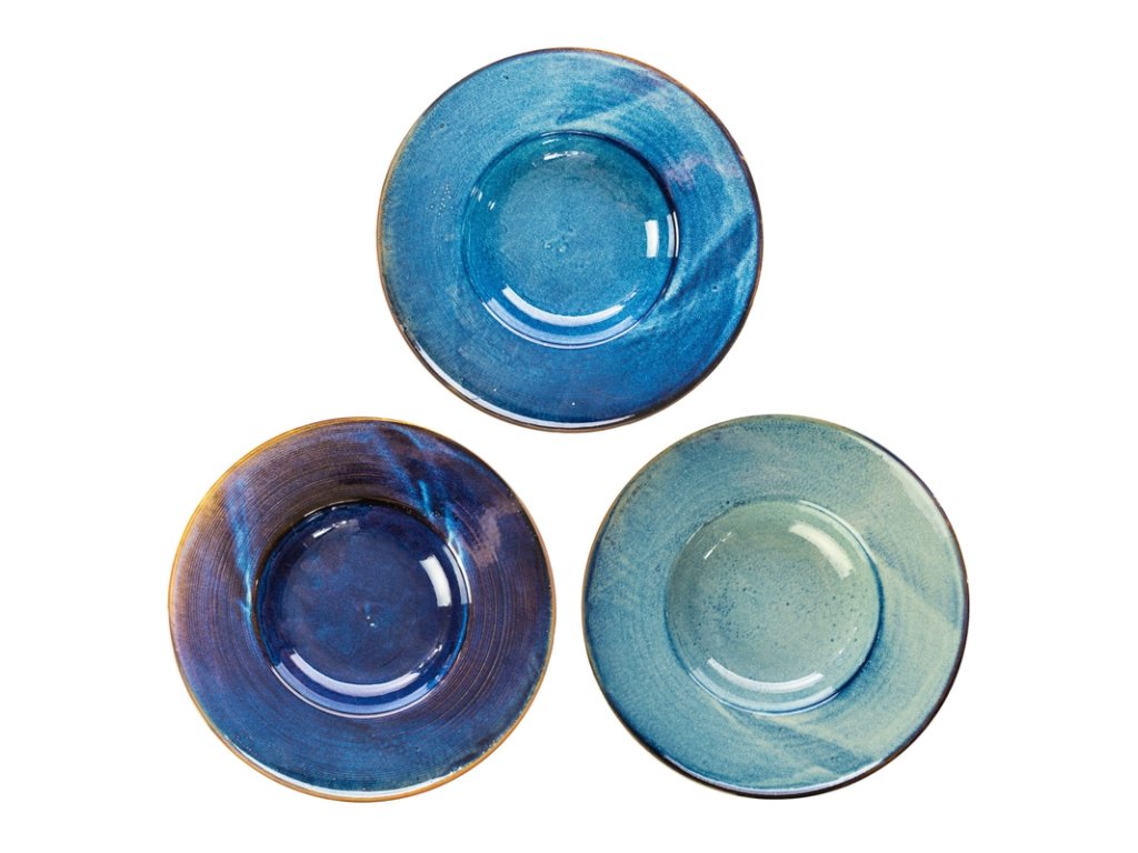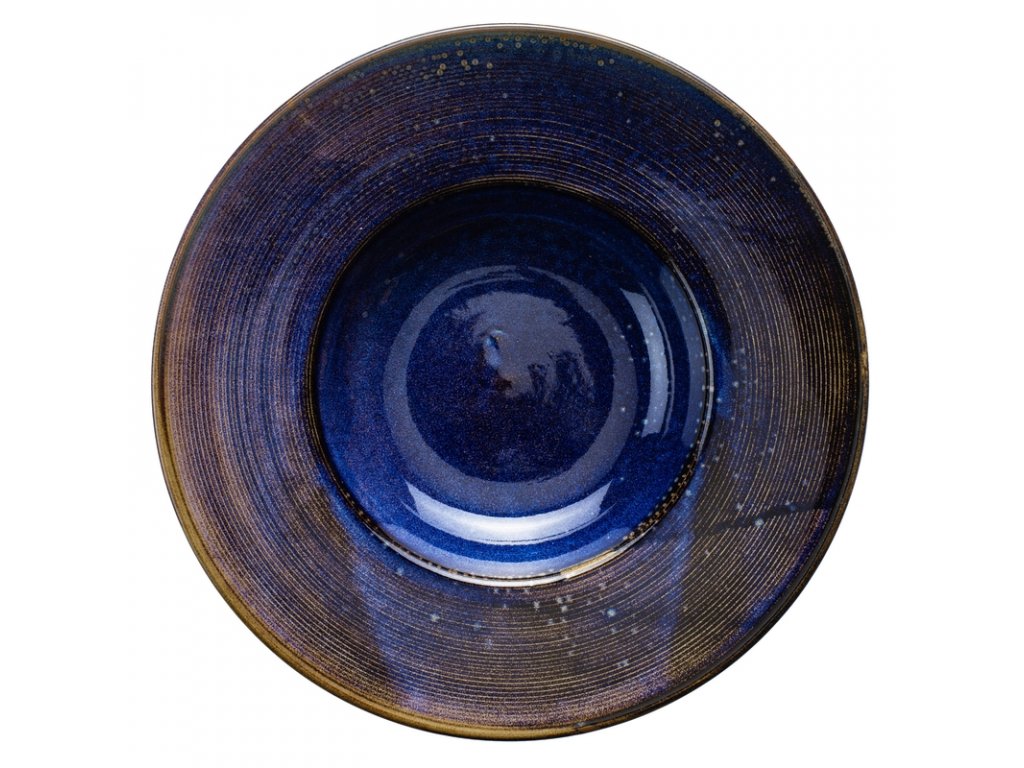 Ultramarín s měděnými okraji, to je hluboký talíř z kolekce Deep Blue od značky Verlo. 100% porcelán pokrytý působivým smaltem zaručuje jedinečný vzor získaný vypalováním v 1 380 °C. To také zaručuje velmi vysokou odolnost proti odštípnutí. Tento hlubokými vlnami ošlehaný parťák vykouzlí příjemnou atmosféru u každého pokrmu, který na něj umístíte. Budete si připadat jak na romantické večeři na pláži při západu slunce.