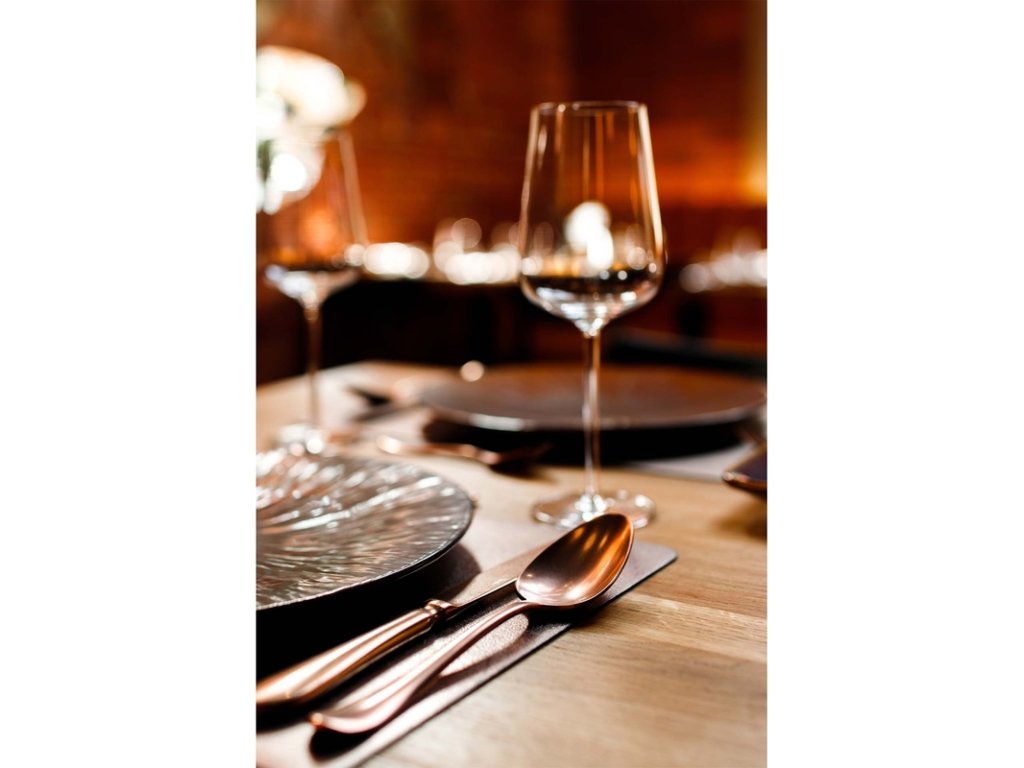 Souprava příborů na sebe upozorní svou netradiční měděnou barvou, která dodává honosný půvab a dokáže rozzářit stolování svou jemnou elegancí. Kvalitní nerezová ocel garantuje dlouhodobou odolnost i při každodenním používání. Kolekce Destello umožňuje prožít gastronomický zážitek, na který jen tak někdo nezapomene.