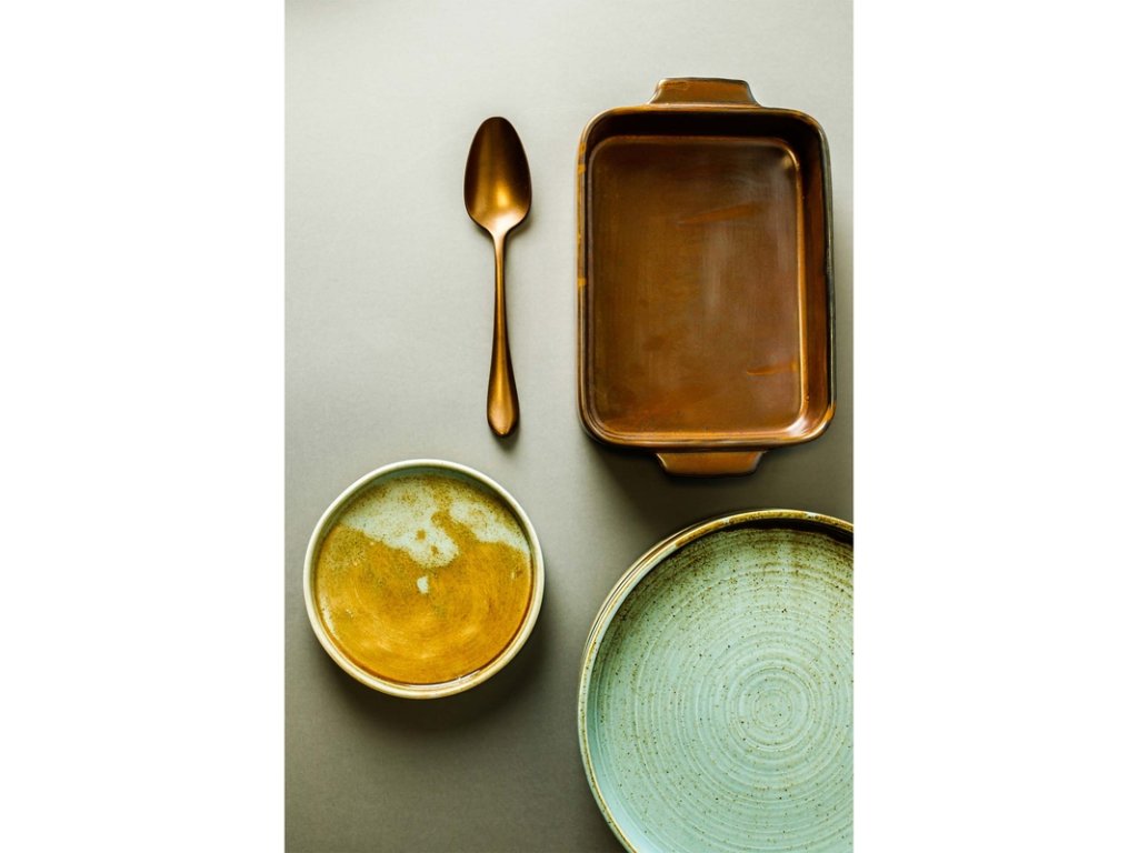 Tato jídelní lžíce zaujme svým měděným leskem a celý stůl tak rozzáří půvabnou jemností a honosným stylem. Je dokonale vyvážená, takže se perfektně drží v ruce. Na její výrobu se používá nerezová ocel 18/10, která garantuje vysokou odolnost proti korozi a dlouhou životnost i při každodenním používání.