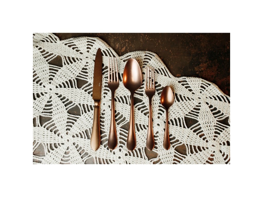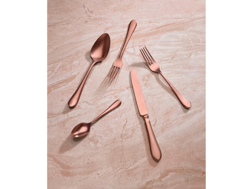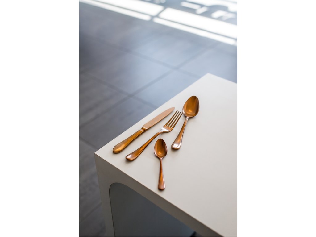 Souprava příborů na sebe upozorní svou netradiční měděnou barvou, která dodává honosný půvab a dokáže rozzářit stolování svou jemnou elegancí. Kvalitní nerezová ocel garantuje dlouhodobou odolnost i při každodenním používání. Kolekce Destello umožňuje prožít gastronomický zážitek, na který jen tak někdo nezapomene.