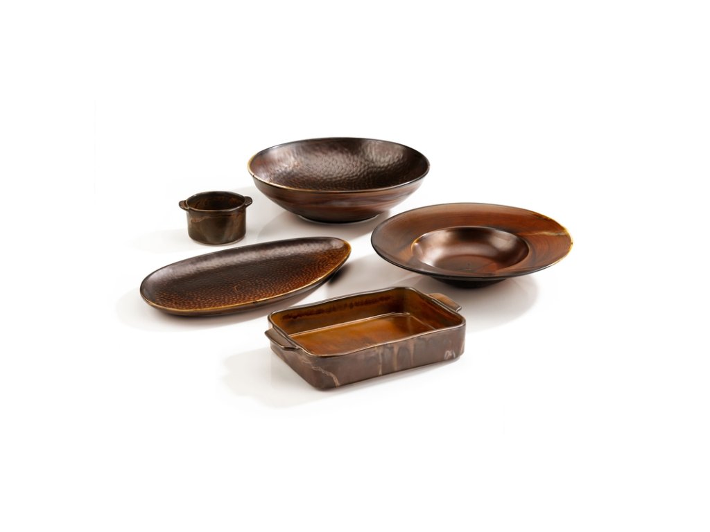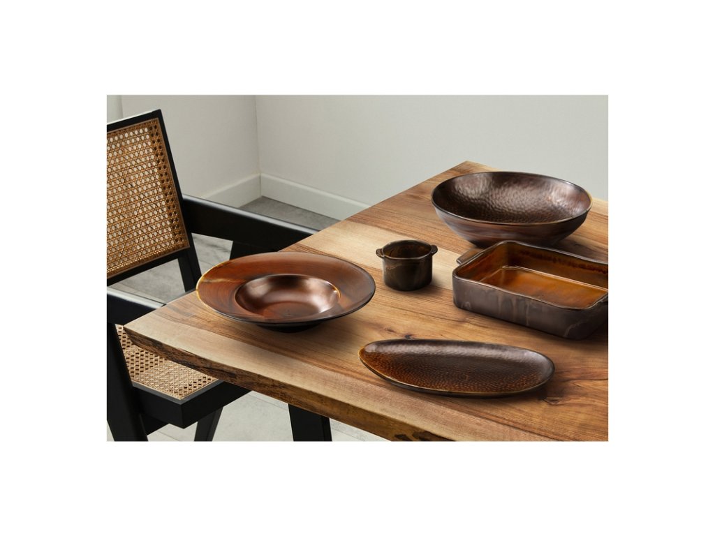 Kouzlo lesního bohatství přírody přináší svým vzhledem kolekce Fire. Nádobí strojené do měděné barvy dodává ten správný dřevnatý šmrnc a nádech. Porcelán se postará o větší výdrž a odolnost těchto krasavců v domácnosti, a to i při každodenním používání.