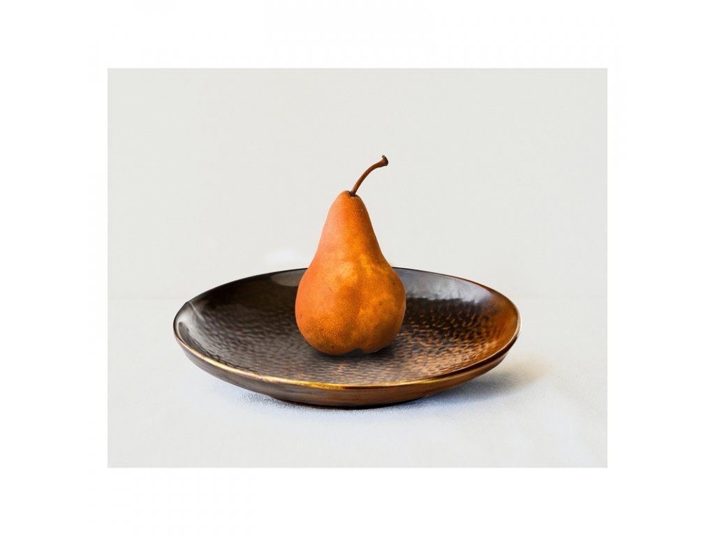Hluboký talíř z kolekce Fire spojuje ladění do měděné barvy a působivou strukturu připomínající krásy lesního bohatství. Jeho jedinečný vzor vznikl pokrytím celého povrchu smaltem. Proces vypalování v 1 380 °C zaručuje vysokou odolnost proti škrábancům a dovoluje mu wellness v myčce na nádobí.