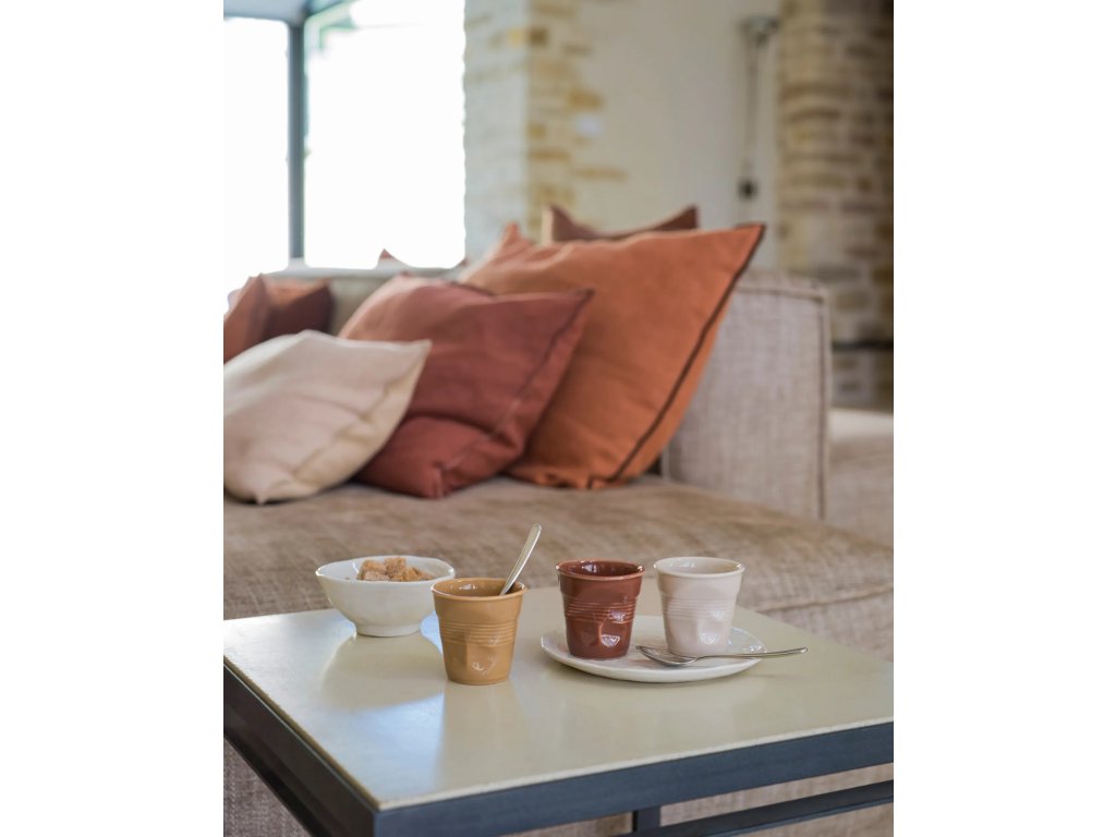 Tento Froissés hrnek je jedním z nejúspěšnějších porcelánových výrobků renomovaného francouzského výrobce. S jeho originálním designem inspirovaným zmačkanými plastovými kelímky dodá vaší kávové rutině nový zážitek. Hrnek o objemu 180 ml je ideální na servírování oblíbených kávových nápojů, jako je cappuccino, latté nebo flat white. Vyroben byl z kvalitního porcelánu přímo ve Francii, čímž spojuje estetiku s kvalitou. Hnědá barva, připomínající teplé odstíny zemitých tónů podzimu nebo čerstvě namleté kávy, dodává tomuto hrníčku přirozený a útulný vzhled, který zútulní jakýkoliv interiér.