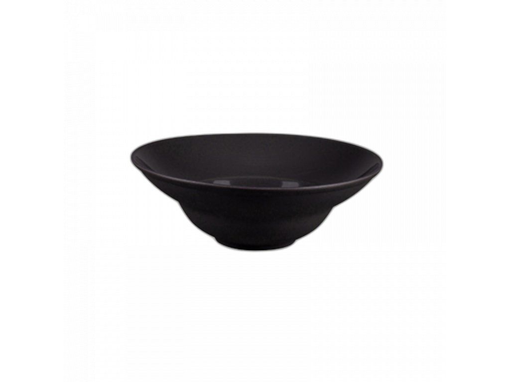 Extra hluboký talíř vyrobený z prvotřídního porcelánu s matným antracitovým povrchem a lesklým černým vnitřkem.