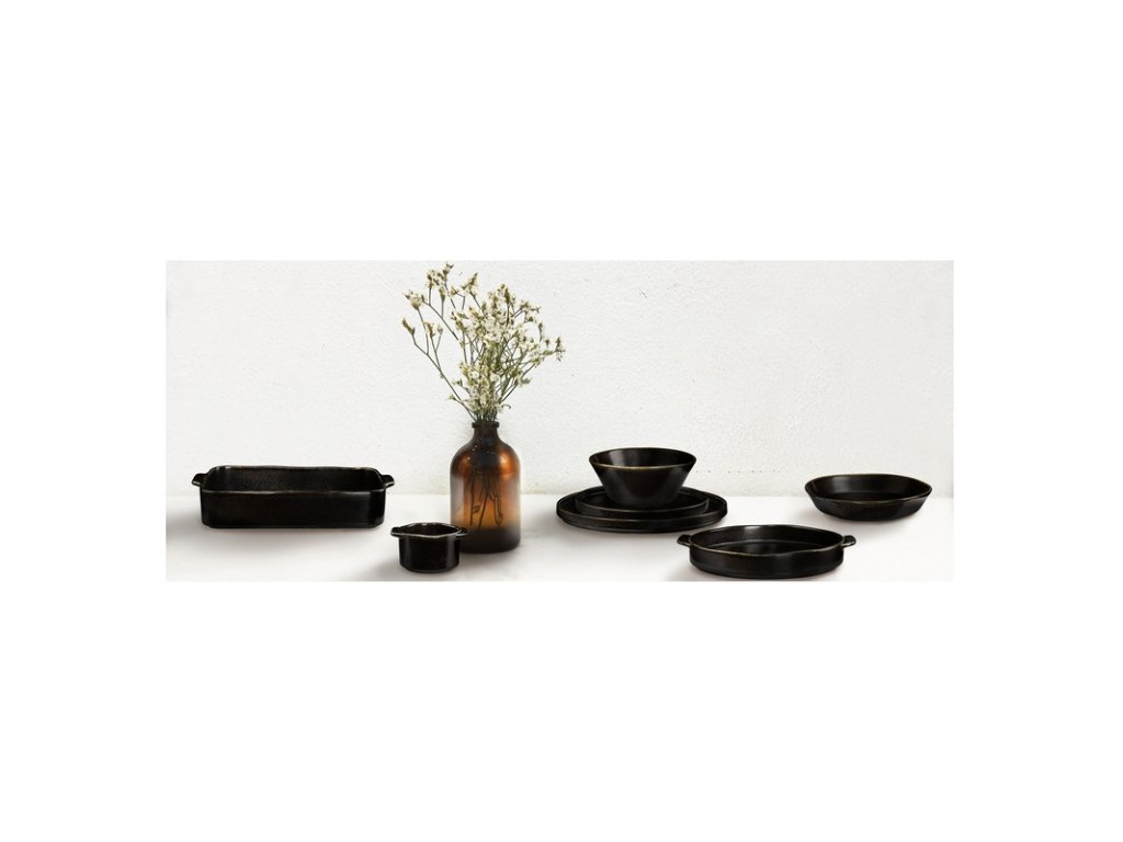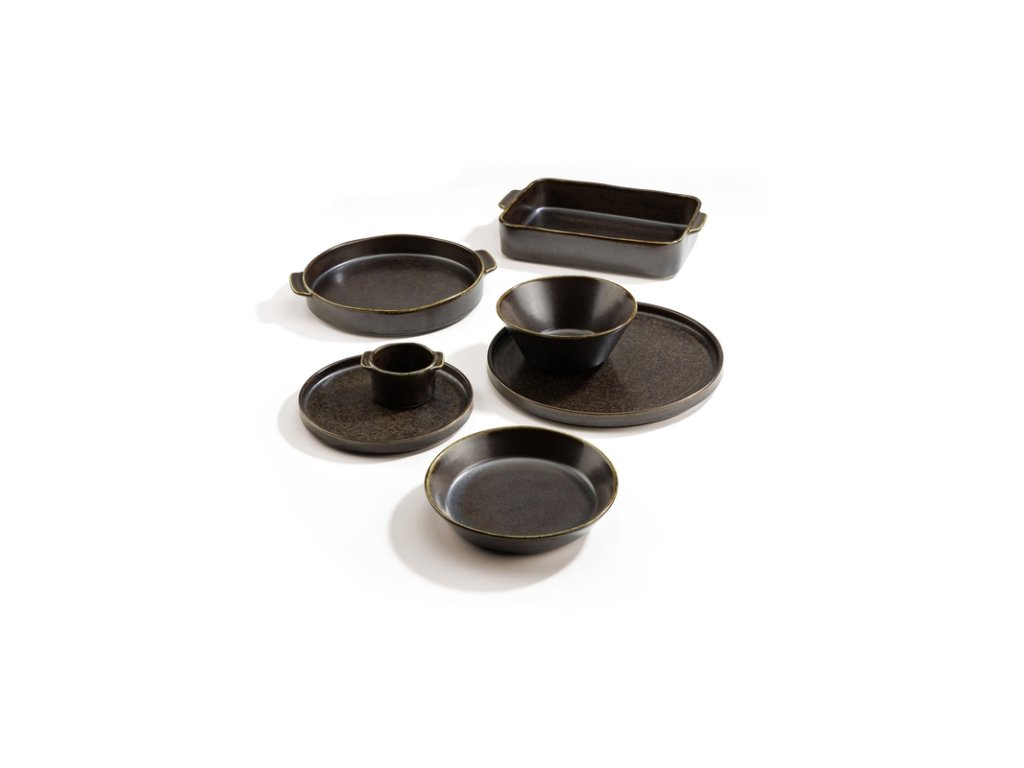 Elegantní tmavý odstín pokrytý smaltem poskytuje parádní prostor pro vyniknutí vašich podávaných specialit. 100% porcelán vytváří jedinečný design získaný během procesu vypalování při 1 380 °C. To také zaručuje železnou sílu a odolnost proti odštípnutí.