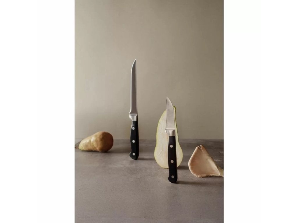 Kovaný nůž JustCut je navržen pro rychlou a přesnou práci při očišťování a zpracování a zeleniny do jakékoliv kuchyně. Díky krátkému, mírně zahnutému ostří snadno kopíruje tvar surovin, a tak se ideálně hodí na škrábání brambor, loupání jablek nebo rychlé porcování menších kousků. Čepel je vytvořená z nerezové oceli, která je kovaná, od čepele až po trn a rukojeť z černého tvrzeného plastu je připevněna třemi nýty. Integrovaná záštita chrání prsty a zajišťuje správné vyvážení při krájení. Dokonce jej můžete mýt v myčce na nádobí.