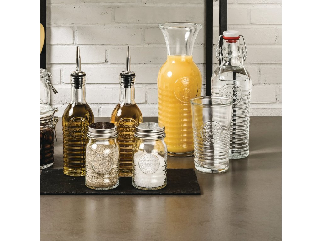 Kolekce Officina 1825 nabízí širokou škálu produktů a doplňků pro vaše jídelní stoly. Sbírka vyniká svým industriálním stylem, který se hodí k moderním, tak i vintage interiérům. Karafy se zaoblenými tvary jsou také ozdobeny charakteristickou rytinou.Bormioli Rocco