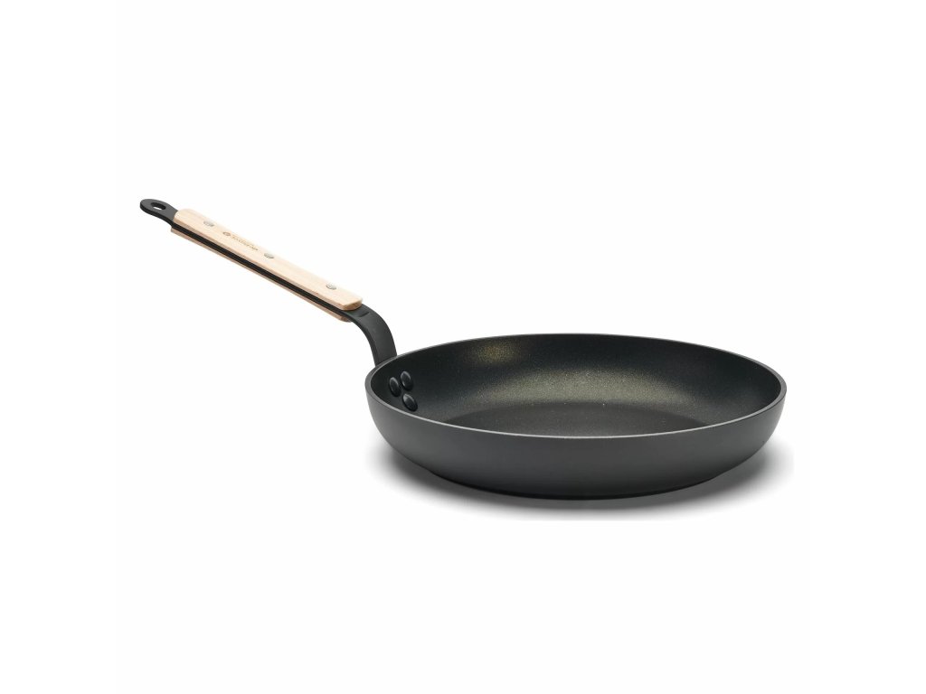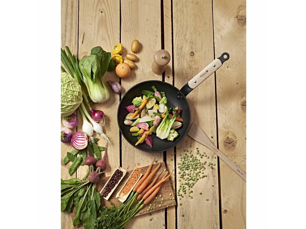 Nepřilnavá pánev kombinuje kovaný hliník s nepřilnavým povrchem a designovou rukojetí z bukového dřeva ošetřeného včelím voskem. Perfektní pro šetrné vaření pro rodinu a plně kompatibilní se všemi typy sporáků včetně indukce.