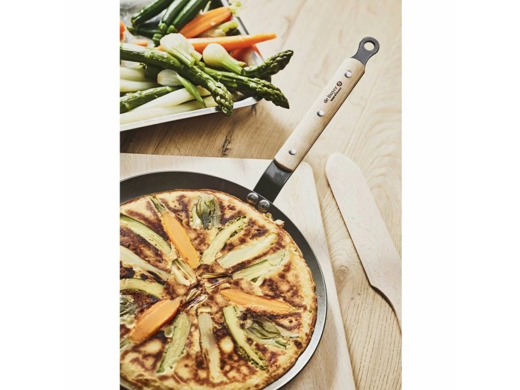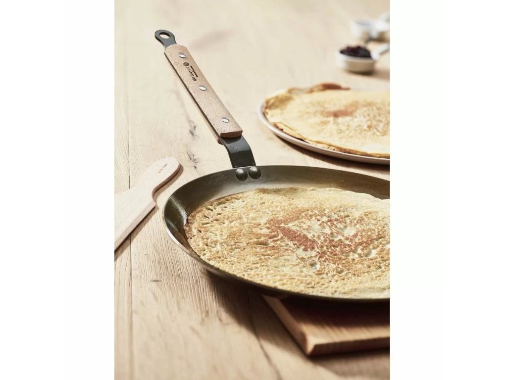 Tradiční ocelová pánev na palačinky s bukovou rukojetí je ideální pro autentickou karamelizaci a křupavé palačinky. Vhodná na všechny sporáky, včetně indukce.