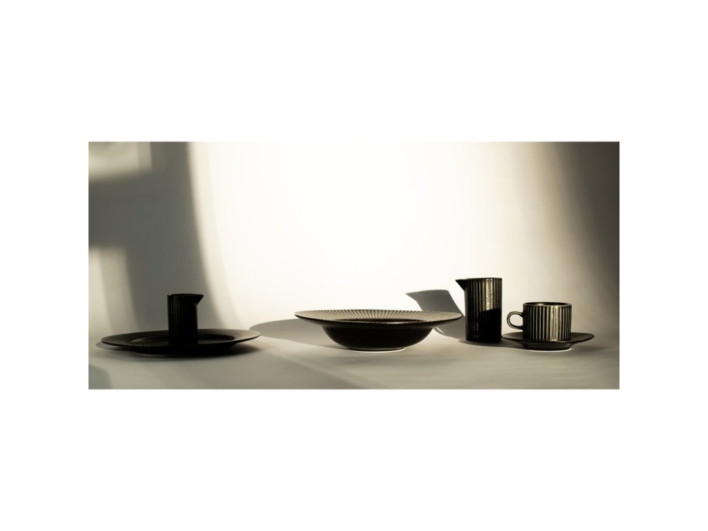 Zaujměte klasickou elegancí s nádobím kolekce Plisse. Krásná sytá grafitová barva odhaluje jemné nuance zasklení, které těmto kouskům dodávají jedinečný charakter, když se vystaví světlu. Právě tato variabilita pod vlivem světla dělá tento porcelán mimořádným. Design jemných drážek zdobící vnější stranu dodává sofistikovanost a a zároveň zachovává univerzální charakter. Toto představuje výbornou volbu pro ty, kteří hledají porcelán s jedinečným vzhledem, který dokonale zapadne do různých stylů interiéru. Vytvořte svým kulinářských specialitám jedinečnou atmosféru na jídelním stole, které jen tak někdo neodolá. Ručně zpracovaný porcelán, nejkvalitnější surovina a charakteristický design vytvářejí dojem směsi klasiky a moderny. Vše vytvořeno s ohledem na profesionální catering – trvanlivé a odolné vůči odštípnutí. Různé formy, struktury a barvy představují skvělé zázemí pro kreativitu kuchyňského nadšence.