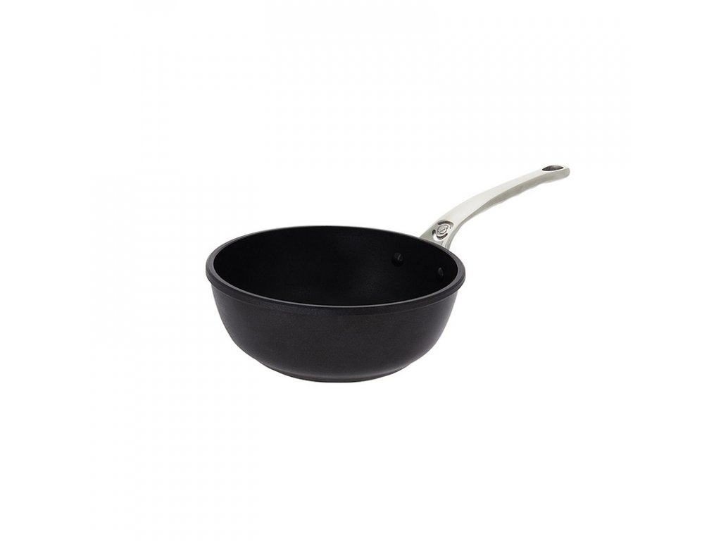 Elegantní rendlík francouzského stylu v působivé černé barvě se hodí na každou plotnu. Vyrábí se ze špičkového litého hliníku, který dodává parádní vlastnost nepřilnavého povrchu. Ergonomická rukojeť se vytváří z nerezové oceli. Rendlík je ideální pro dlouhé vaření. Materiál zajišťuje odolnost vůči poškrábání a rovnoměrně rozmisťuje teplo po celém obvodu. S tímto krasavcem ukuchtíš ty nejlahodnější soté či jiné pokrmy. V rendlíku nepoužívej kovové náčiní.Rendlík 280 mm – černý