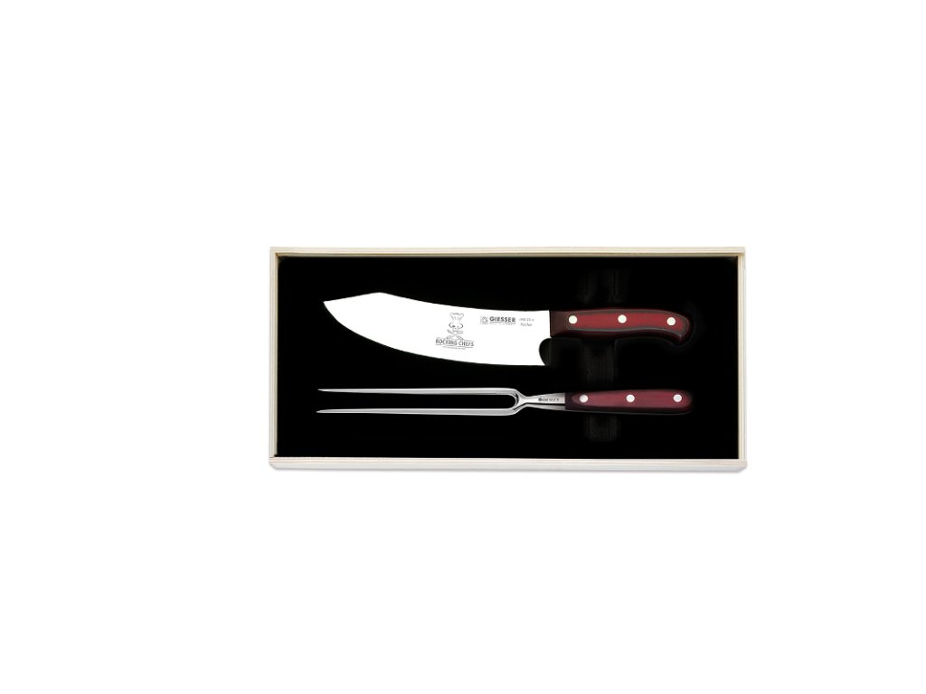 Tento speciální a cenný kuchařský set by měl být vždy pečlivě ručně umýván a bezpečně skladován (mimo dosah dětí). Nůž a vidlici na maso samozřejmě můžete pořídit i zvlášť.