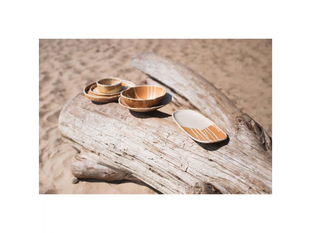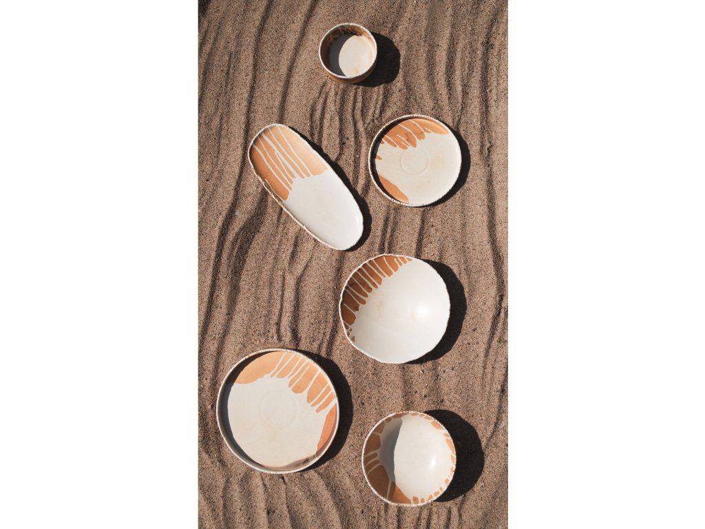Co takhle ocitnout se na písečné pláži a užít si pohodovou atmosféru letní dovolené u moře? Přesně to dokáže nádobí kolekce Samto, které porkmy naservíruje v působivé eleganci a jedinečnosti. Kombinaci dvou kontrastních porcelánových struktur krásně doplňují výrazné odstíny. Tmavší, lehce rezavá barva a syrová struktura smaltu dokonale ladí s působivým, hladkým prosáknutím v barvě vanilkové bílé. Nádobí zdobí jemné vypoukliny, které dodávají pokrmům neobvyklý vizuální efekt. Surový povrch má lehce drsný charakter, což vytváří rustikální kouzlo. Nepravidelně zakončené ráfky představují dodatečný prvek, který zdůrazňuje individualitu každého pokrmu. 100% porcelán vytváří jedinečný design získaný během procesu vypalování při 1 380 °C. To také zaručuje a odolnost proti odštípnutí. Tato jedinečná kolekce porcelánu zaujme nejen kontrastními strukturami a barvami, ale překvapí i svou jemnou elegancí. Skvěle se hodí do každého interiéru, kterému dodá jedinečný akcent.