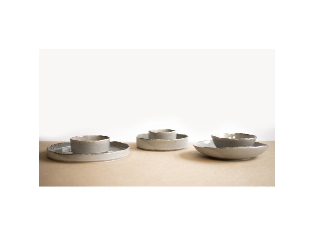 Nádobí kolekce Samto na vás zapůsobí svým jedinečným zpracováním a elegancí šedého odstínu. Nepravidelně zakončené ráfky značí dodatečný prvek, který zdůrazňuje individualitu každého pokrmu. 100% porcelán pokrytý glazurou dodává jedinečný design, který vaše kulinářské speciality nechá vyniknout v celé své kráse. Porcelán vysoké kvality se vypaluje při 1 380 °C, což kouskům dodává velmi vysokou odolnost proti odštípnutí.