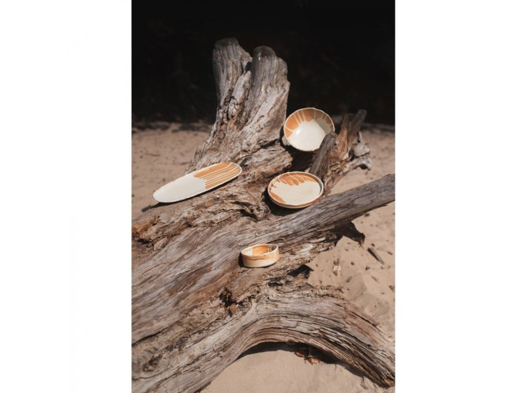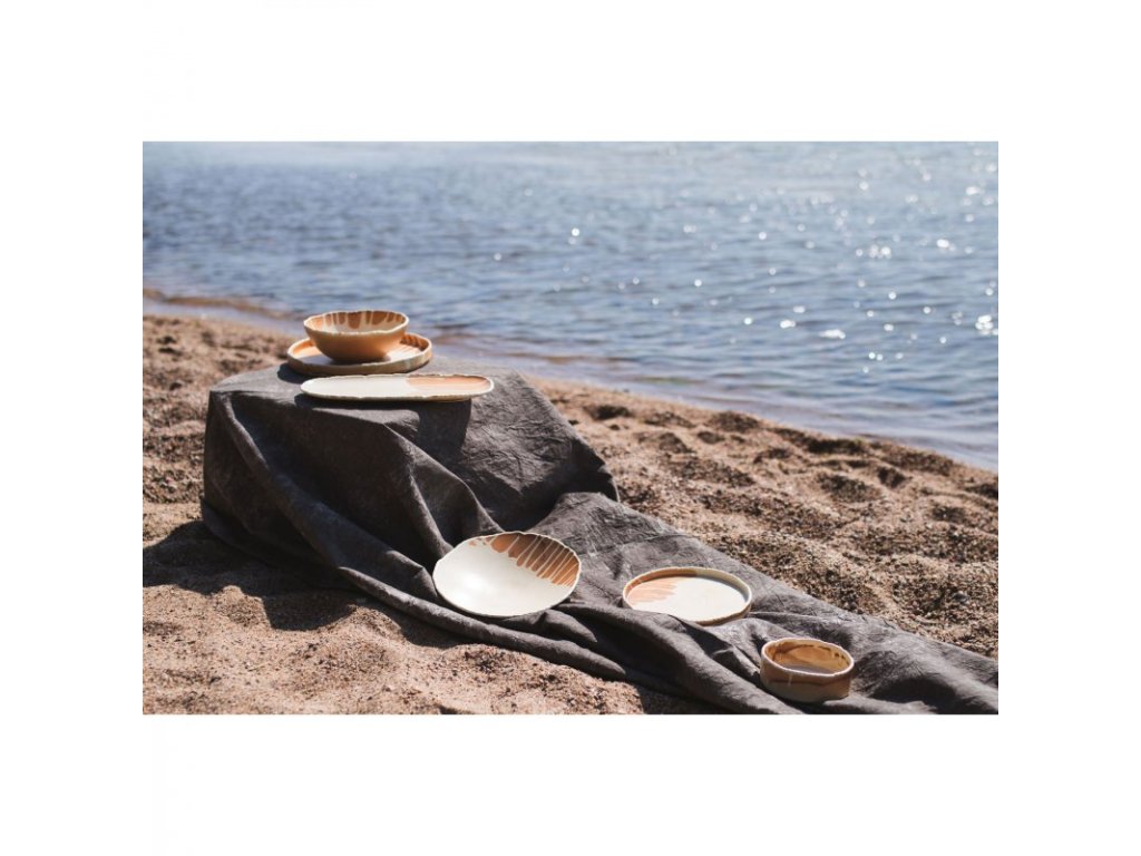 Co takhle ocitnout se na písečné pláži a užít si pohodovou atmosféru letní dovolené u moře? Přesně to dokáže nádobí kolekce Samto, které porkmy naservíruje v působivé eleganci a jedinečnosti. Kombinaci dvou kontrastních porcelánových struktur krásně doplňují výrazné odstíny. Tmavší, lehce rezavá barva a syrová struktura smaltu dokonale ladí s působivým, hladkým prosáknutím v barvě vanilkové bílé. Nádobí zdobí jemné vypoukliny, které dodávají pokrmům neobvyklý vizuální efekt. Surový povrch má lehce drsný charakter, což vytváří rustikální kouzlo. Nepravidelně zakončené ráfky představují dodatečný prvek, který zdůrazňuje individualitu každého pokrmu. 100% porcelán vytváří jedinečný design získaný během procesu vypalování při 1 380 °C. To také zaručuje a odolnost proti odštípnutí. Tato jedinečná kolekce porcelánu zaujme nejen kontrastními strukturami a barvami, ale překvapí i svou jemnou elegancí. Skvěle se hodí do každého interiéru, kterému dodá jedinečný akcent.