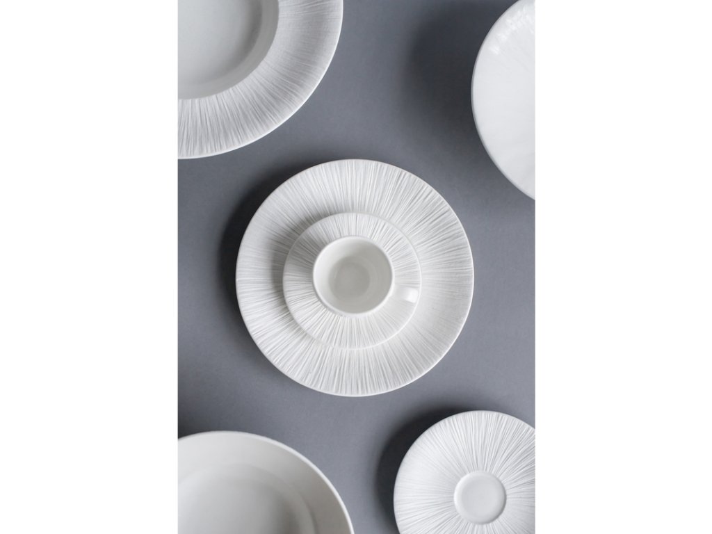 Toto porcelánové nádobí zaujme svou klasickou a univerzální elegancí. Krásná „špinavě“ bílá barva s jemným odstínem šedé provází v každém světle a odhaluje různé jemné nuance. Právě tato variabilita pod vlivem světla dělá tento porcelán tak jedinečným. Charakteristickým prvkem kolekce Sense jsou široké dekory v podobě jemných drážek, které zdobí vnější stranu nádobí. Jedná se o detail dodávající kolekci eleganci, jemnost a přitom si zachovává její univerzální charakter. Díky nepravidelným tvarem okrajů nádob se každá z nich mírně liší, což vytváří jedinečné kouzlo. Ručně zpracovaný porcelán, nejkvalitnější surovina a charakteristický design vytvářejí dojem směsi klasiky a moderny. Vše vytvořeno s ohledem na profesionální catering – trvanlivé a odolné vůči odštípnutí. Různé formy, struktury a barvy představují skvělé zázemí pro kreativitu kuchyňského nadšence.Podšálek pr. 15 cm