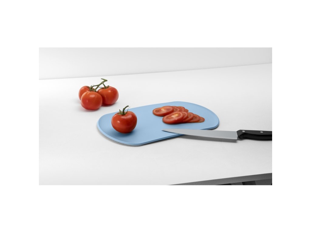 Pohodlné prkénko představuje základní prvek každého kuchyňského vybavení. Speciálně profilovaný okraj desky a minimální sklon usnadňují sběr a odvod kapalin, které se nahromadily při řezání. Protiskluzová základna zajišťuje stabilitu prkna a umožňuje bezpečné sekání. Desku lze použít i jako servírovací tác.