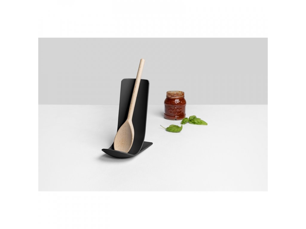 Stojan STAND představuje dokonalého pomocníka v kuchyni nejen pro umístění lžic nebo naběraček, ale také pro podložení knihy, telefonu nebo tabletu. Zakřivený, stabilní tvar s mírným vybráním na základně účinně chrání pracovní desku před znečištěním, například od kapající omáčky ze lžíce či naběračky. Základna má protiskluzovou ochranu, takže je velmi stabilní a nehýbe se.