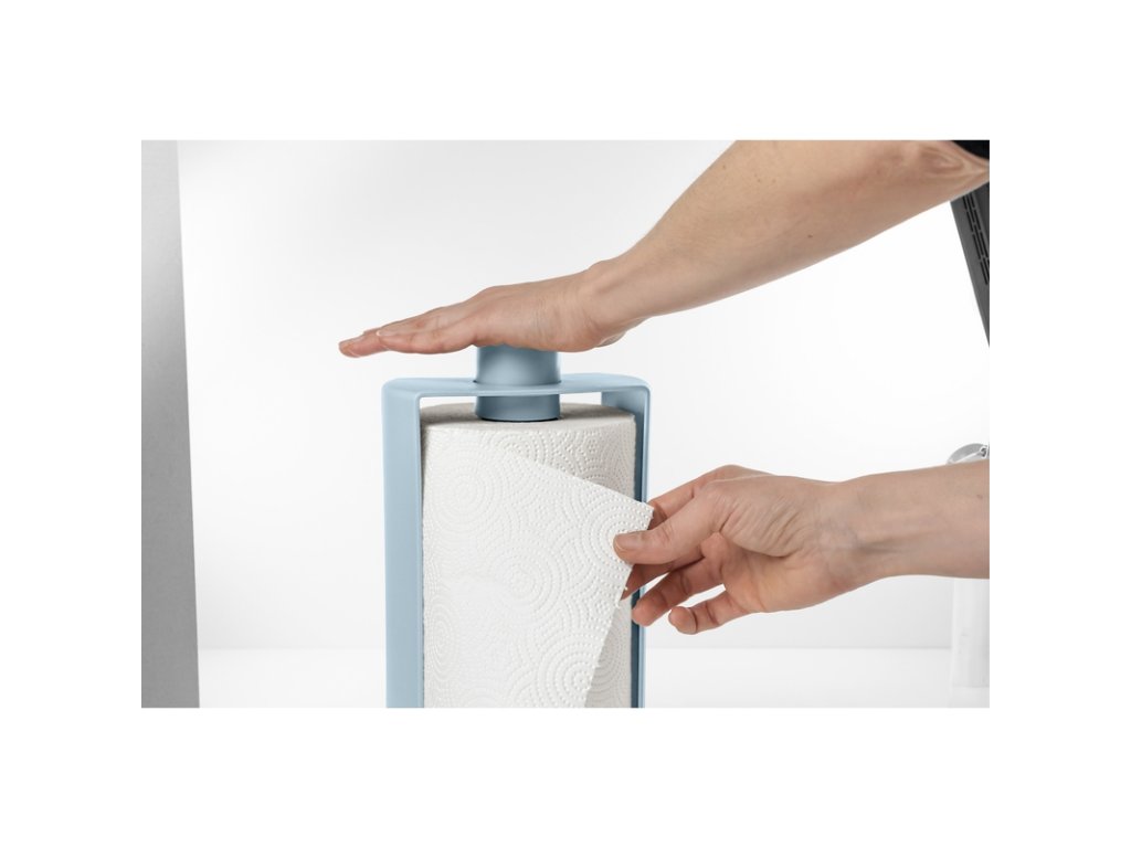 Papírové utěrky patří mezi nezbytné součásti každé kuchyně. Jednorázové, ekologické a vždy hygienické, hodí se jak na utírání rukou, tak i pro utření nádobí, pracovní desky, a dokonce i odkapávání potravin po například smažení. Stojan na kuchyňský papír STOP je důmyslný a extrémně snadno se používá. Speciální zámek usnadňuje odtržení papíru v požadovaném množství. Stačí lehce stisknout tlačítko shora a jednoduše odtrhnout tolik papíru, kolik potřebujete. Vyhnete se tak nadměrnému odvíjení papíru a plýtvání. Protiskluzová základna dokonale stabilizuje stojan.