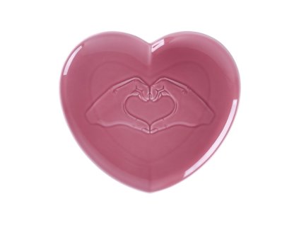 Cliché mělký reliéfní talíř ve tvaru srdce vás zaujme svým jemným reliéfem ve tvaru rukou tvořící srdce.