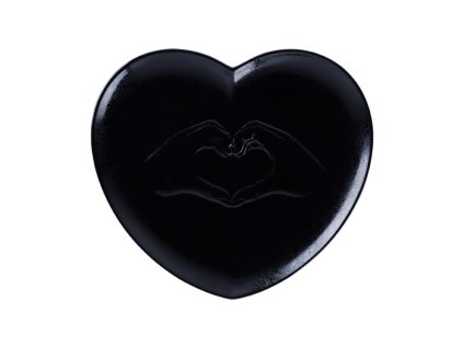 Cliché mělký reliefní talíř ve tvaru srdce vás zaujme svým jemným reliéfem ve tvaru rukou tvořící srdce.