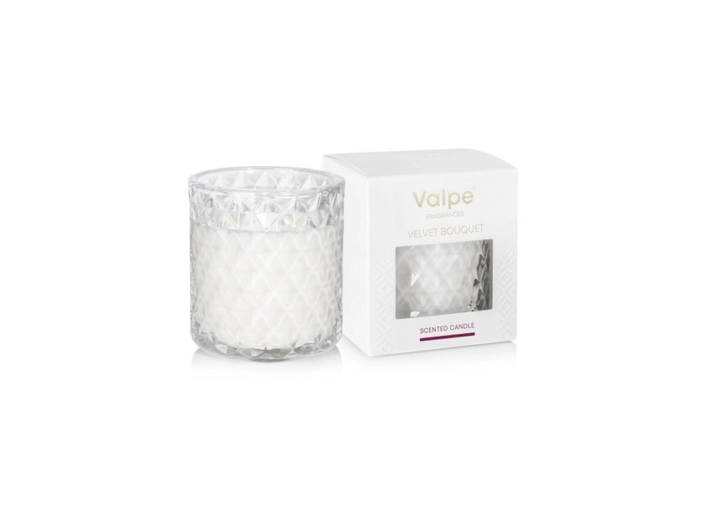 Prémiová vonná svíčka Velvet Bouquet v křišťálovém skle dokonale odráží světlo plamene a vytváří tak hřejivou atmosféru. Domov vám provoní šťavnatým ovocem, jemnými květinami a dřevitými tóny.